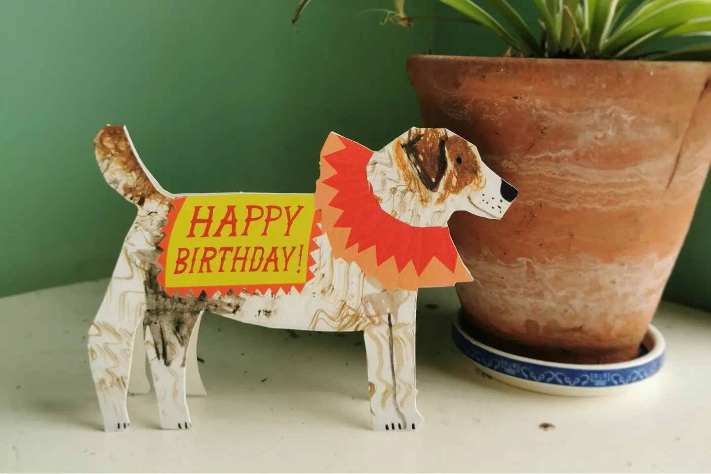 Grußkarte zum Umwickeln – „Geburtstagshund“
