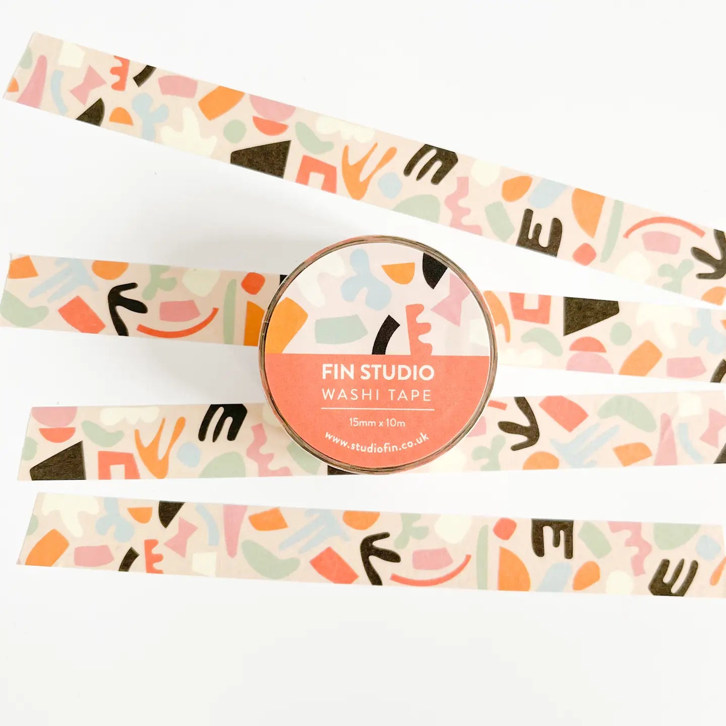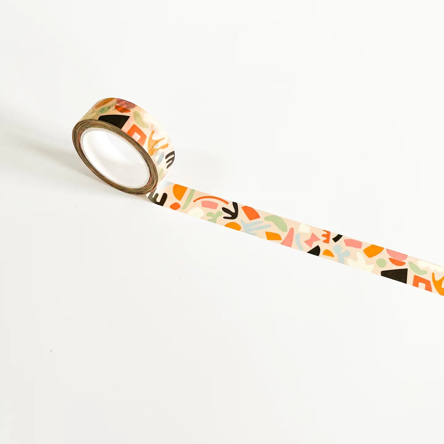Deze vrolijke rol washi-tape met pastelkleuren en abstracte vormen is geweldig voor in je journal, planner, schetsboek of notitieboek. Ook leuk om brieven of cadeautjes mee in te pakken.