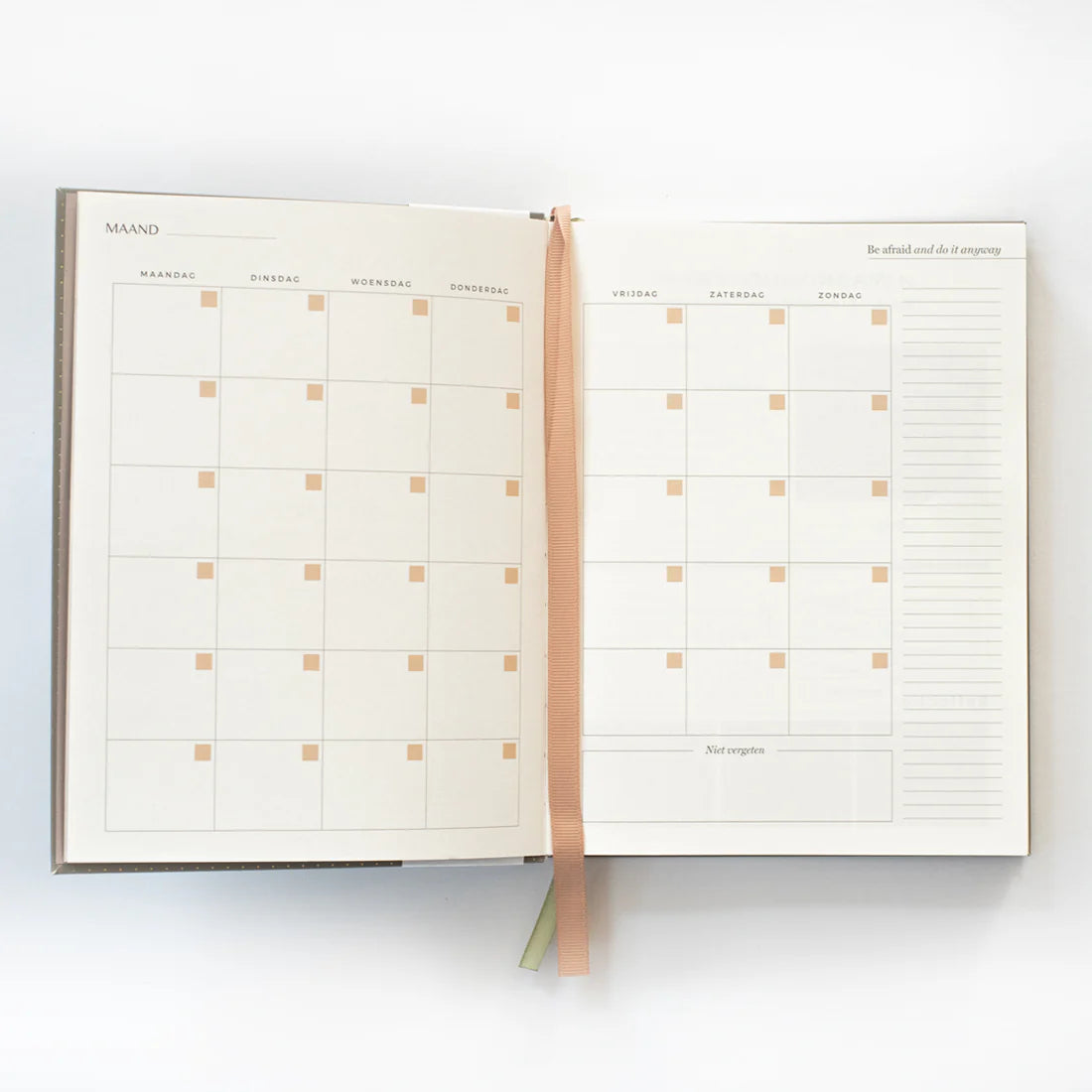 - Wochenplan – Tagesablauf, Ziele, Dankbarkeit und Platz für Notizen. Der Wochenplaner ist sechs Monate lang nutzbar.