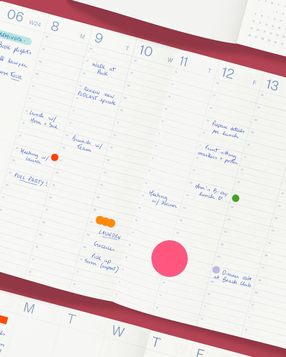 Der neue Planer 2026 von Mishmash in der wunderschönen neuen Farbe Candy startet im Januar und läuft bis zum 26. Dezember 2026. Dank des praktischen A5-Formats lässt sich dieser Planer problemlos überallhin mitnehmen. Im Inneren finden Sie ein praktisches Zeitblock-Layout mit allen Wochentagen nebeneinander und viel Platz zum Schreiben für alle Termine, Termine und Ausflüge. Es enthält eine praktische Monats- und Wochenübersicht und besteht aus hochwertigem 100-g/m²-Papier. Im Inneren befinden sich zwei Klappen, die als Lesezeichen verwendet werden können.