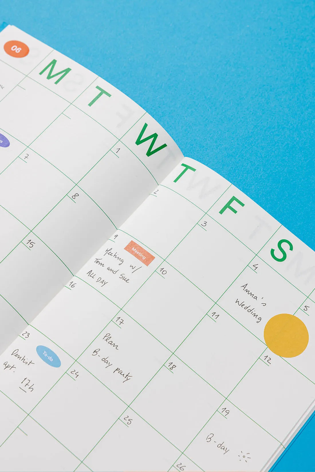 Dieser coole neue datumslose Planer von Mishmash gibt Ihnen die Freiheit, mit der Planung zu beginnen, wann immer Sie möchten. Mit seinem schönen, großen A4-Format lässt es sich gut aufklappen auf dem Schreibtisch und passt genauso gut in Ihre Tasche. Auf der Innenseite finden Sie das praktische Monatslayout mit allen Wochentagen zusammen und ausreichend Platz zum Schreiben für alle Ihre Fristen, Termine und Ausflüge.