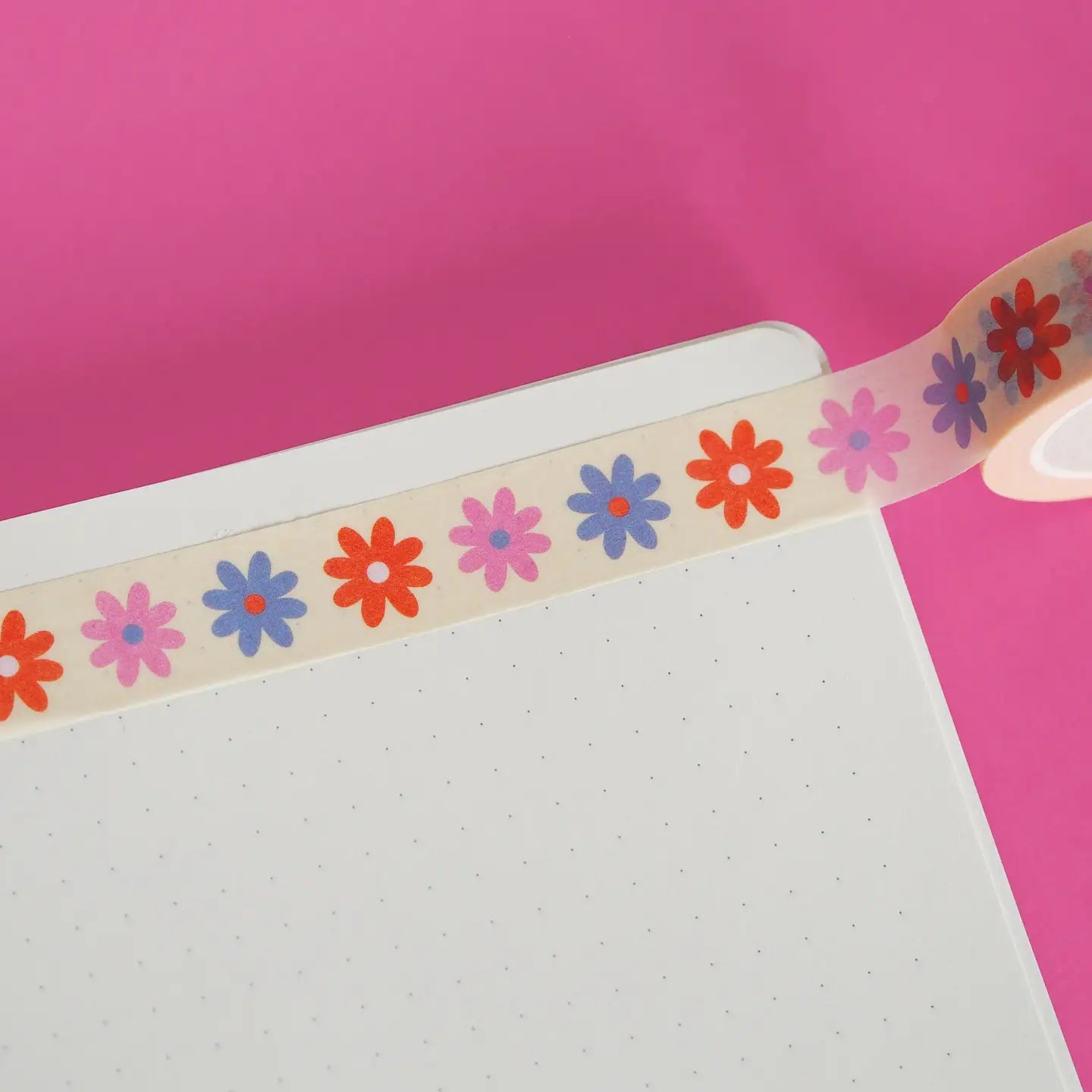 Deze vrolijke washi-tape met bloemetjes is super leuk voor in je schetsboek, journal, notitieboek of planner!