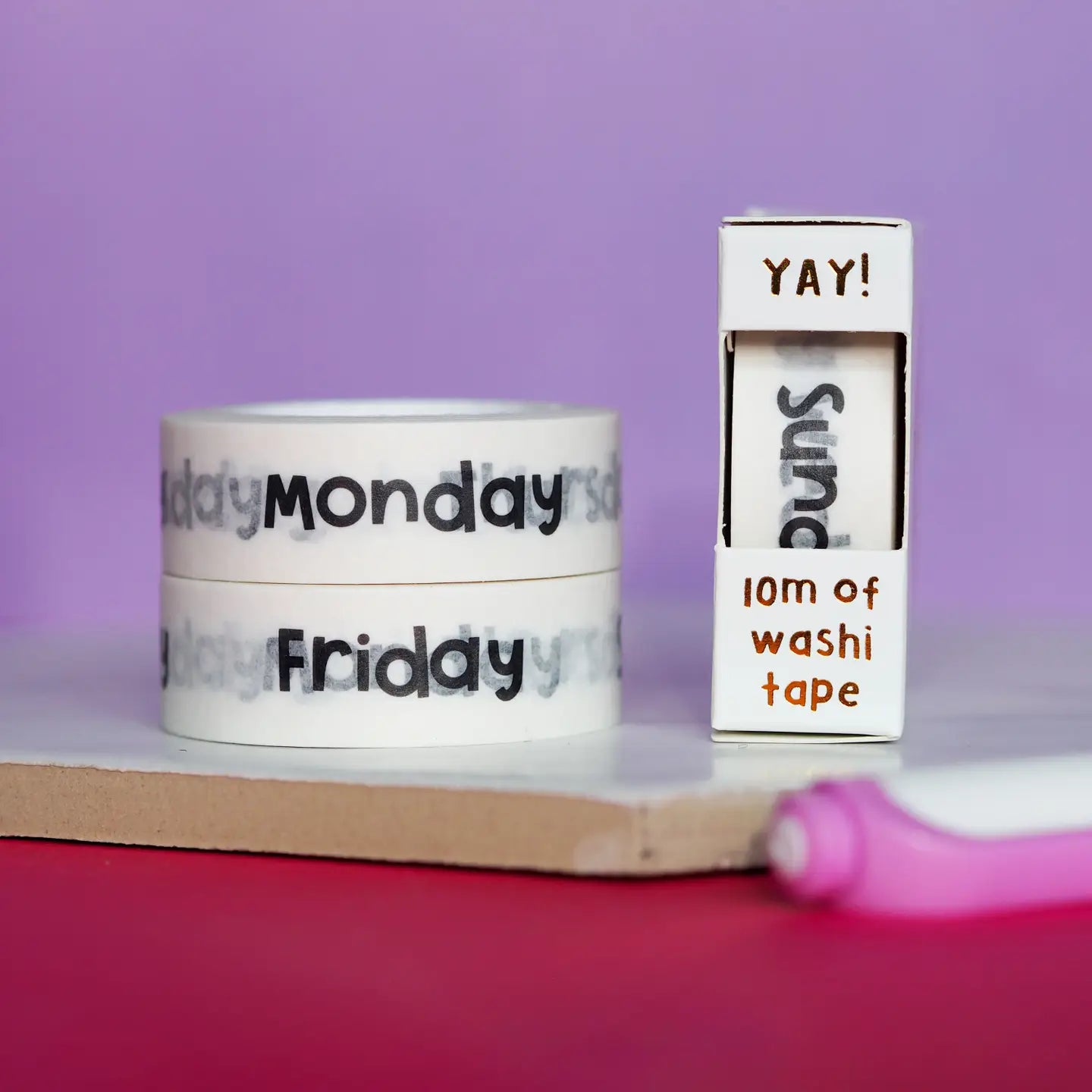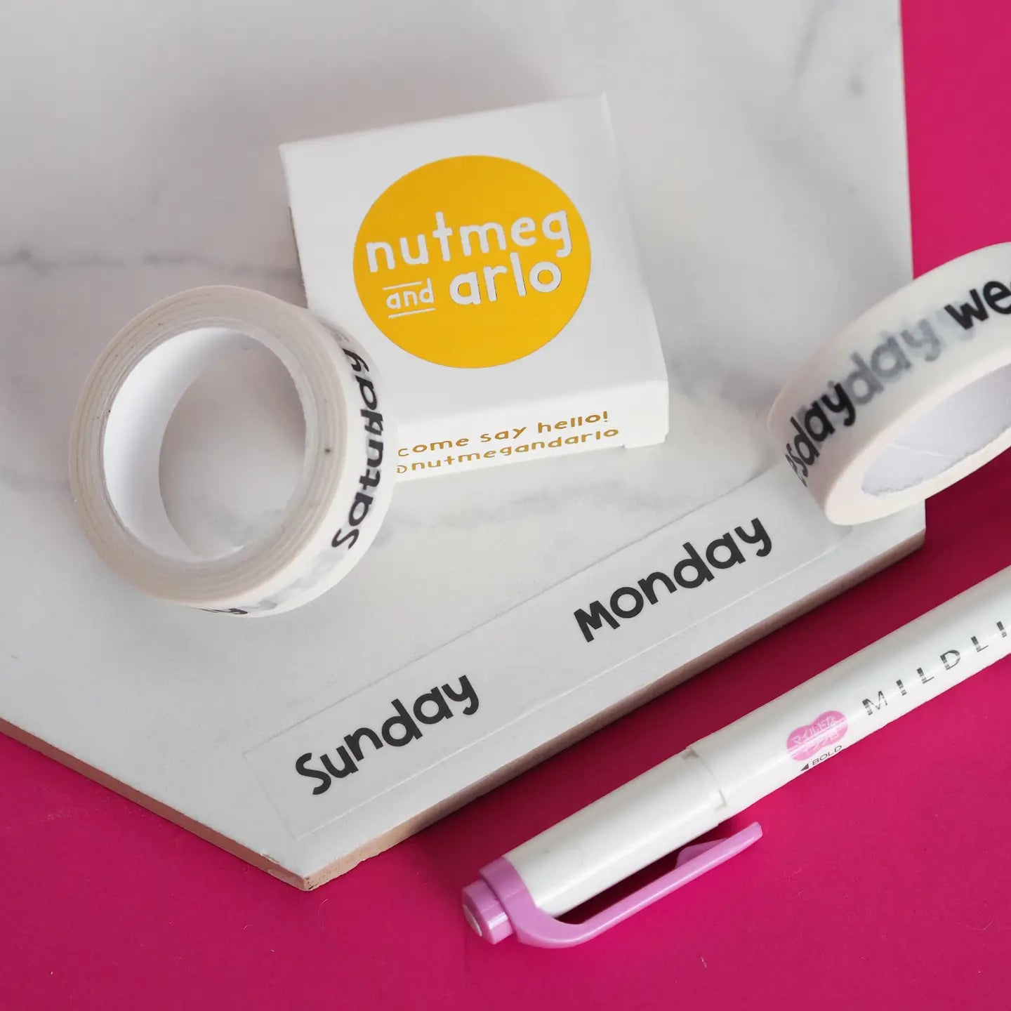 Deel je planner, notitieboek, bullet journal of agenda in met deze makkelijke dagen van de week washi tape! Functioneel en mooi voor het oog. Deze washi tape voegt een vleugje creativiteit toe aan je dagelijkse planning.