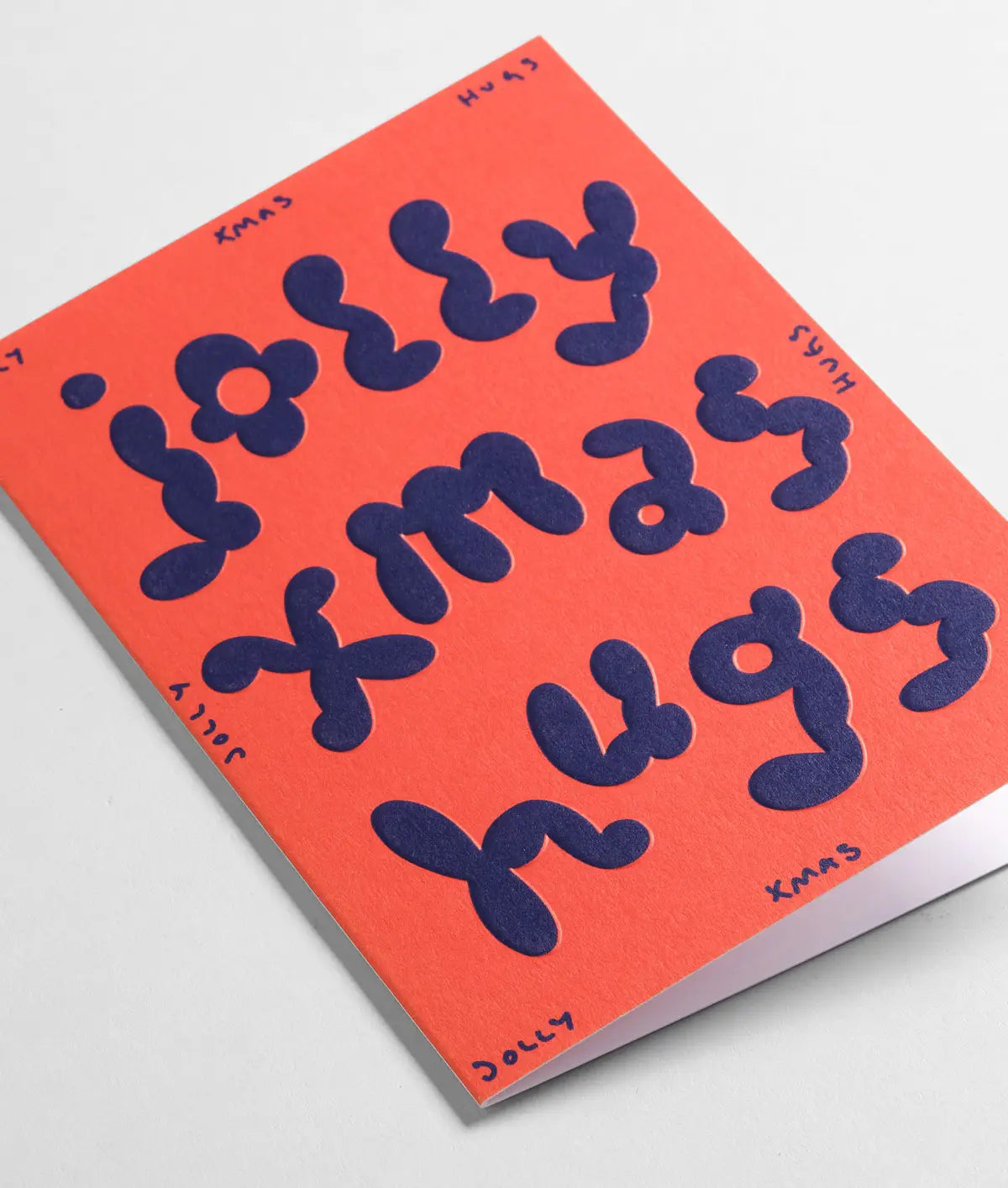 Verras iemand met deze vrolijke en originele kerstkaart. Een leuk kerstboodschap met mooie opvallende letters in reliëf.