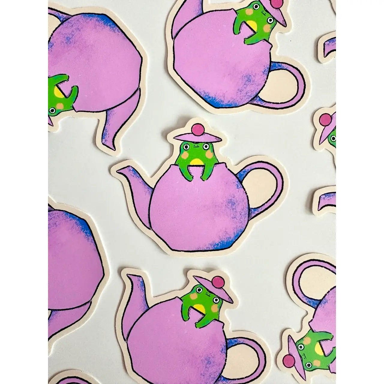 Deze vrolijke sticker bevat een kikker in een theepot. Natuurlijk onmisbaar voor op jouw planner, schetsboek, notitieboek, laptop, waterfles of telefoon!