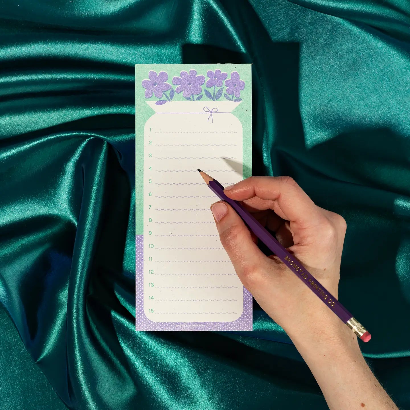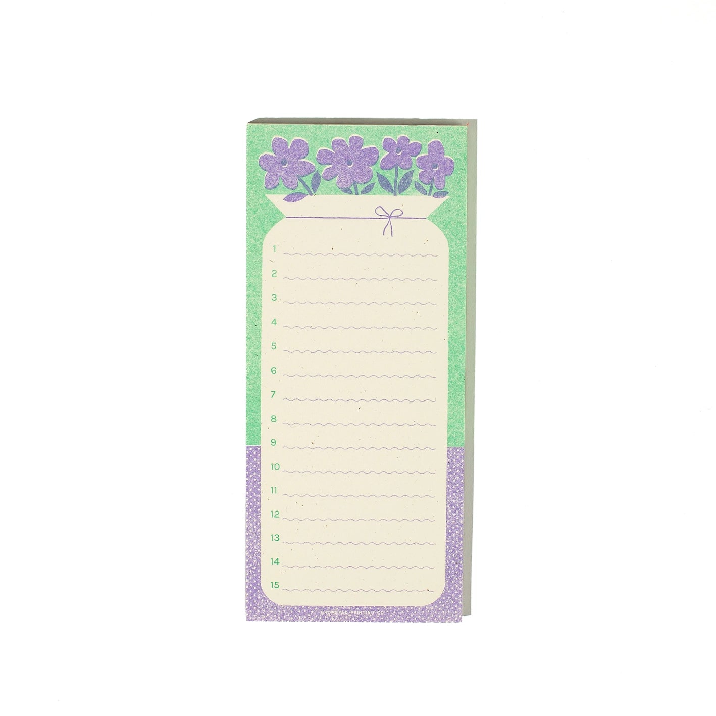 A cheerful vase of flowers is ready for your to-do list! Risotto print in seafoam and violet. Never forget important tasks, plans, or chores that need to be done with this handy notepad.