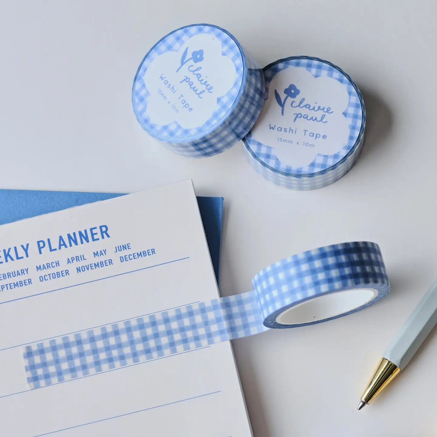 This adorable hand-drawn blue gingham washi tape from Claire Paul is perfect for decorating your bullet journal, planners, scrapbooking, and gift wrapping. It adds fun and color and is also easy to remove.