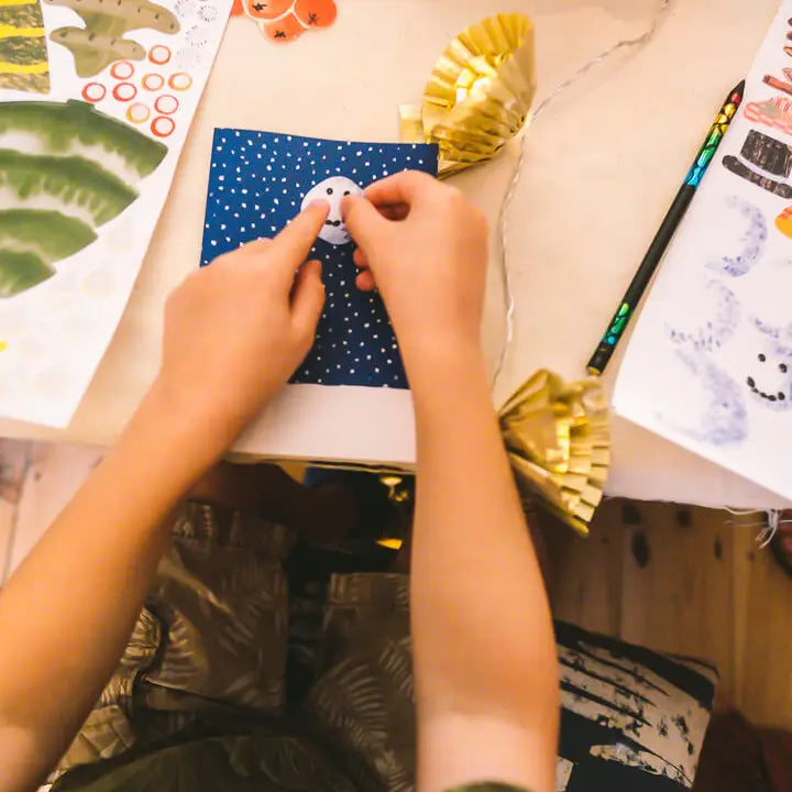 How fun is this Hadley set for making your own Christmas cards ! The pack contains everything you need to design 6 super cute snowman cards. The set includes 6 background cards, 6 envelopes, and enough stickers to create beautiful cards. The cards are a standard C6 size (15cm x 10.5cm when folded) and come with special recycled envelopes. High-quality, vibrant print, all presented in an A4 cornstarch sleeve with a beautiful hand-stamped label.