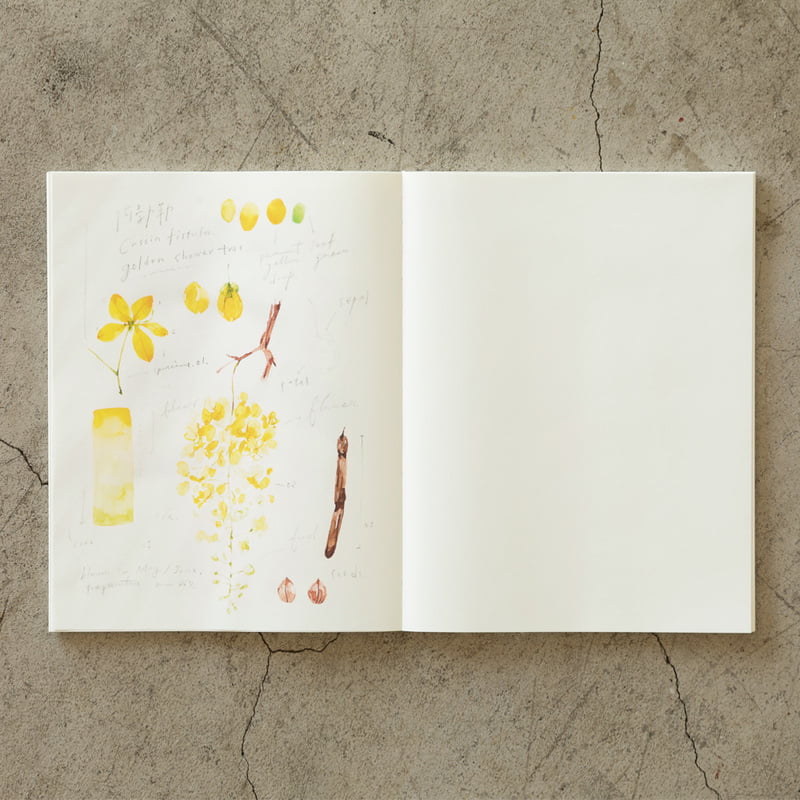 This special notebook from Midori contains special writing paper made of 20% cotton pulp. The paper has a soft texture that you can write on beautifully with, for example, color or graphite pencils, fountain pen or loose ink. The paper does not bleed through.