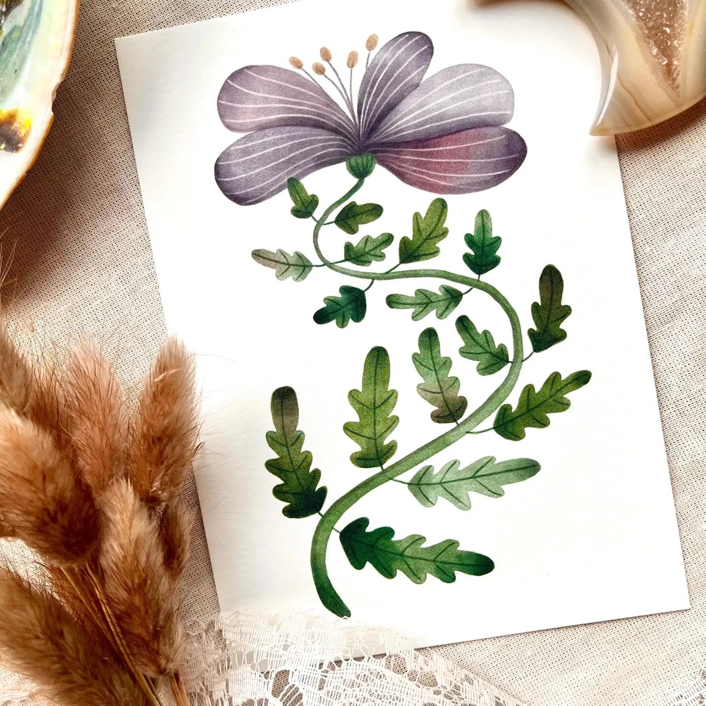 Send this card with a beautiful purple flower to someone you want to cheer up, wish them strength, or simply because you think they deserve this lovely card! It's perfect for framing as an art print.