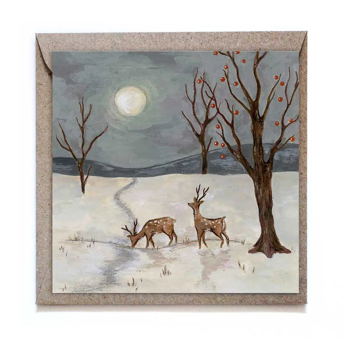 This beautiful greeting card with its sweet deer is versatile. It's perfect for sending as a warm winter greeting or as a Christmas card! Write a lovely message inside.