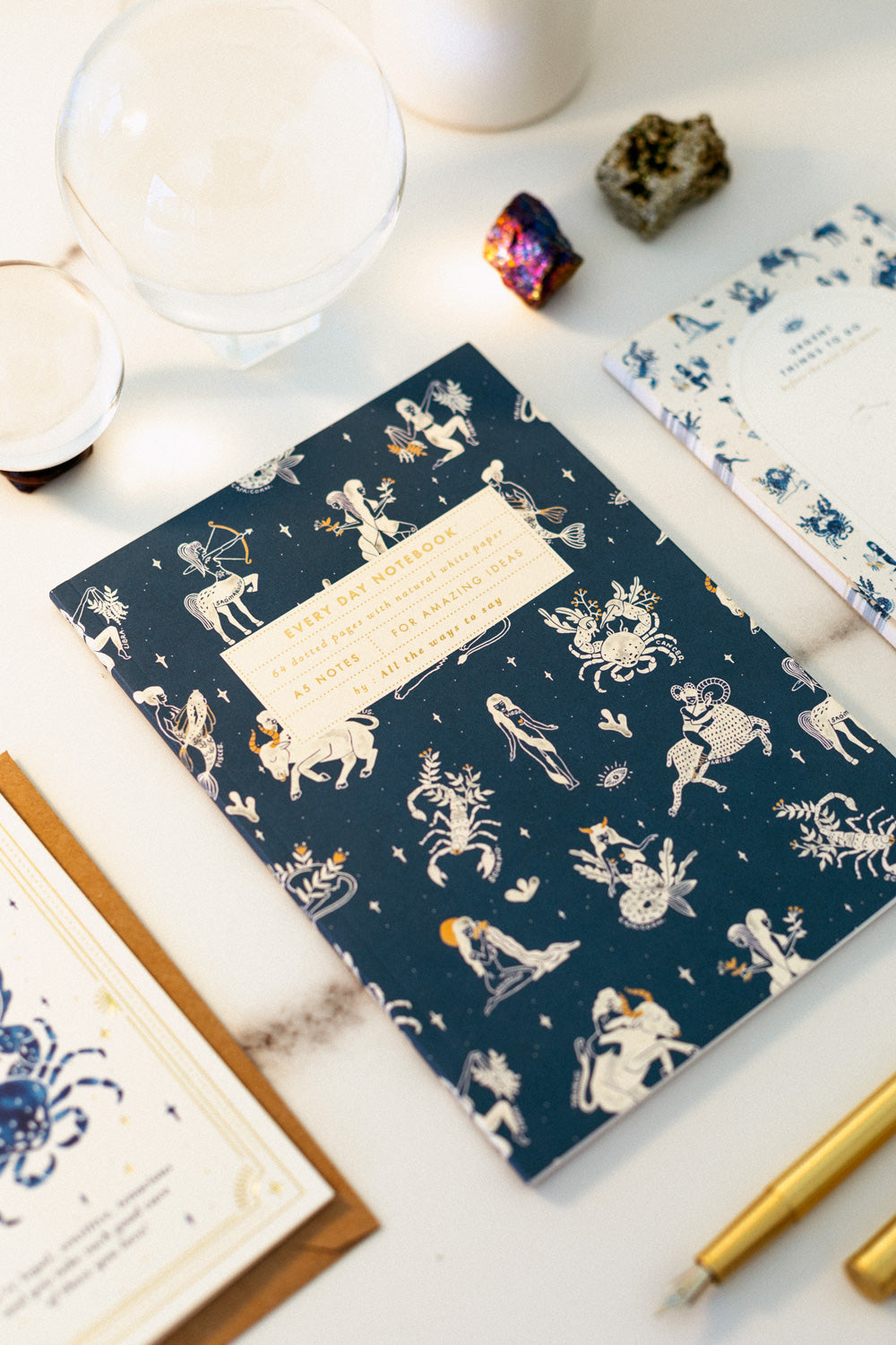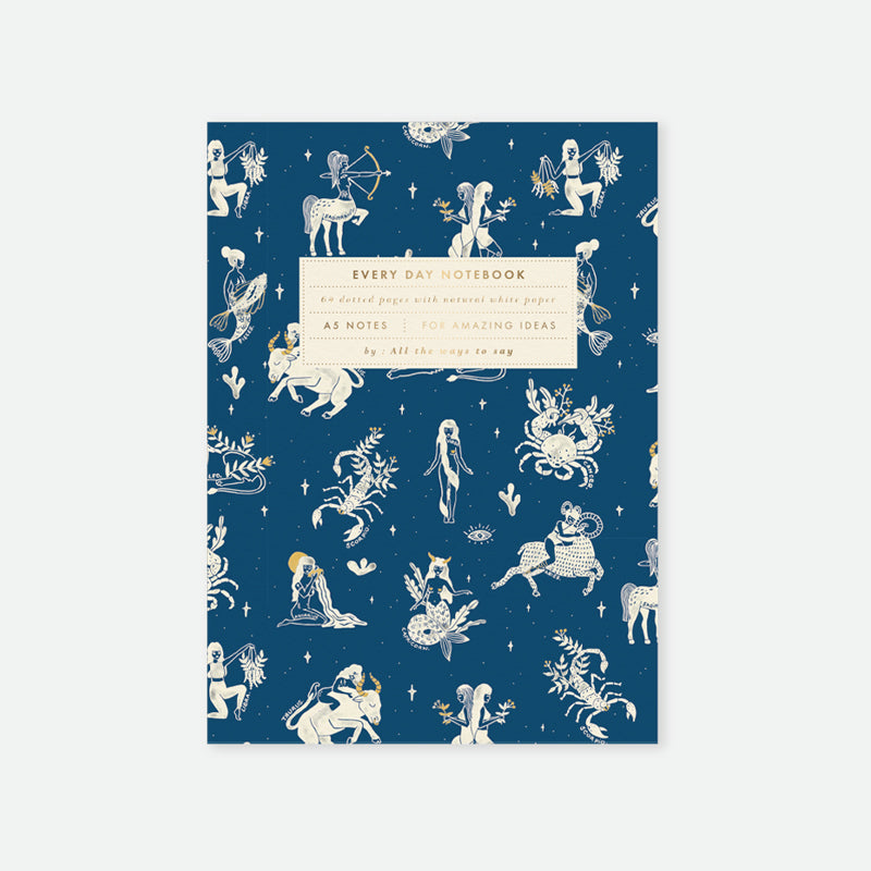 Dit kosmische boekje heeft 64 dotted pagina's en is daarom ideaal om al je reisverhalen, schetsen en ideeën op kwijt kunt. Handig om mee te nemen dankzij het A5 formaat. De cover versierd met mystieke symbolen van de astrologie, als je daar geen inspiratie van krijgt!