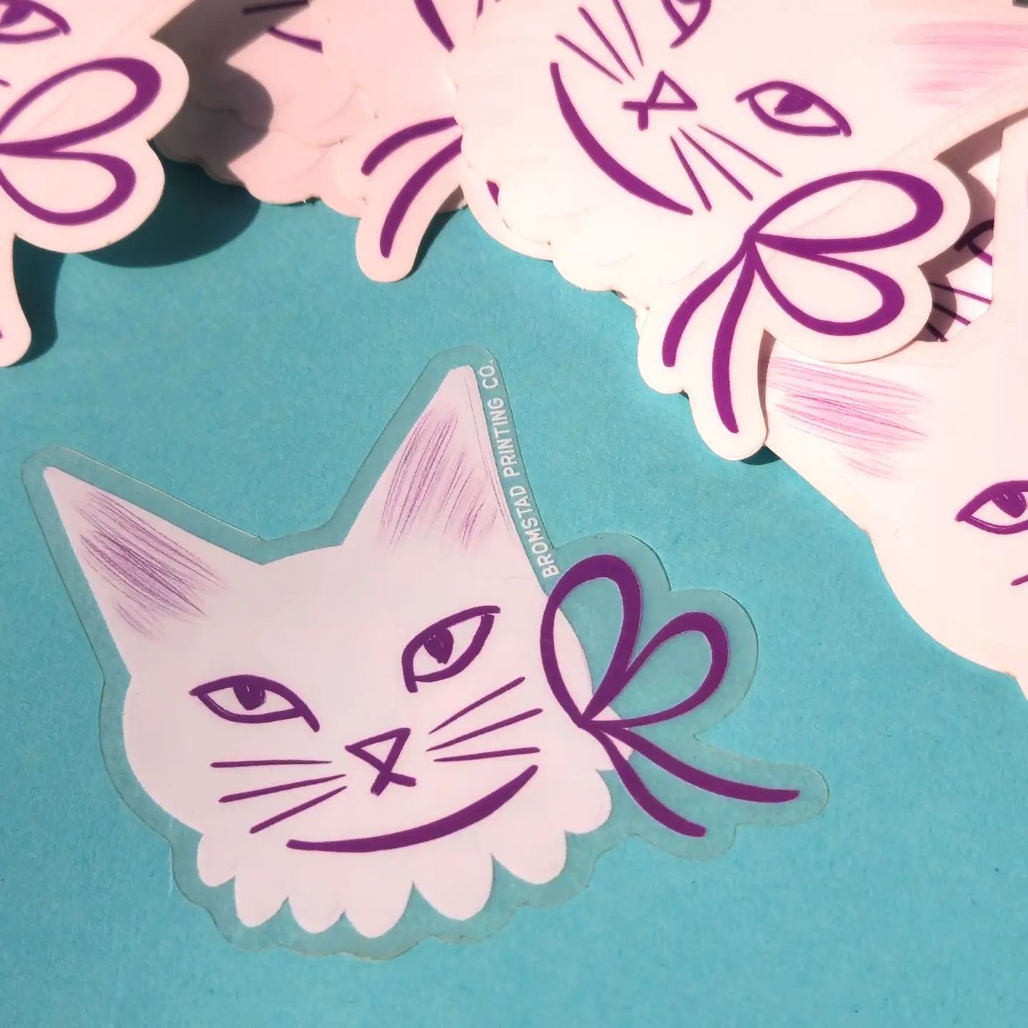 Bromstad Printing Co. 'Cat with ribbon' - Clear Sticker