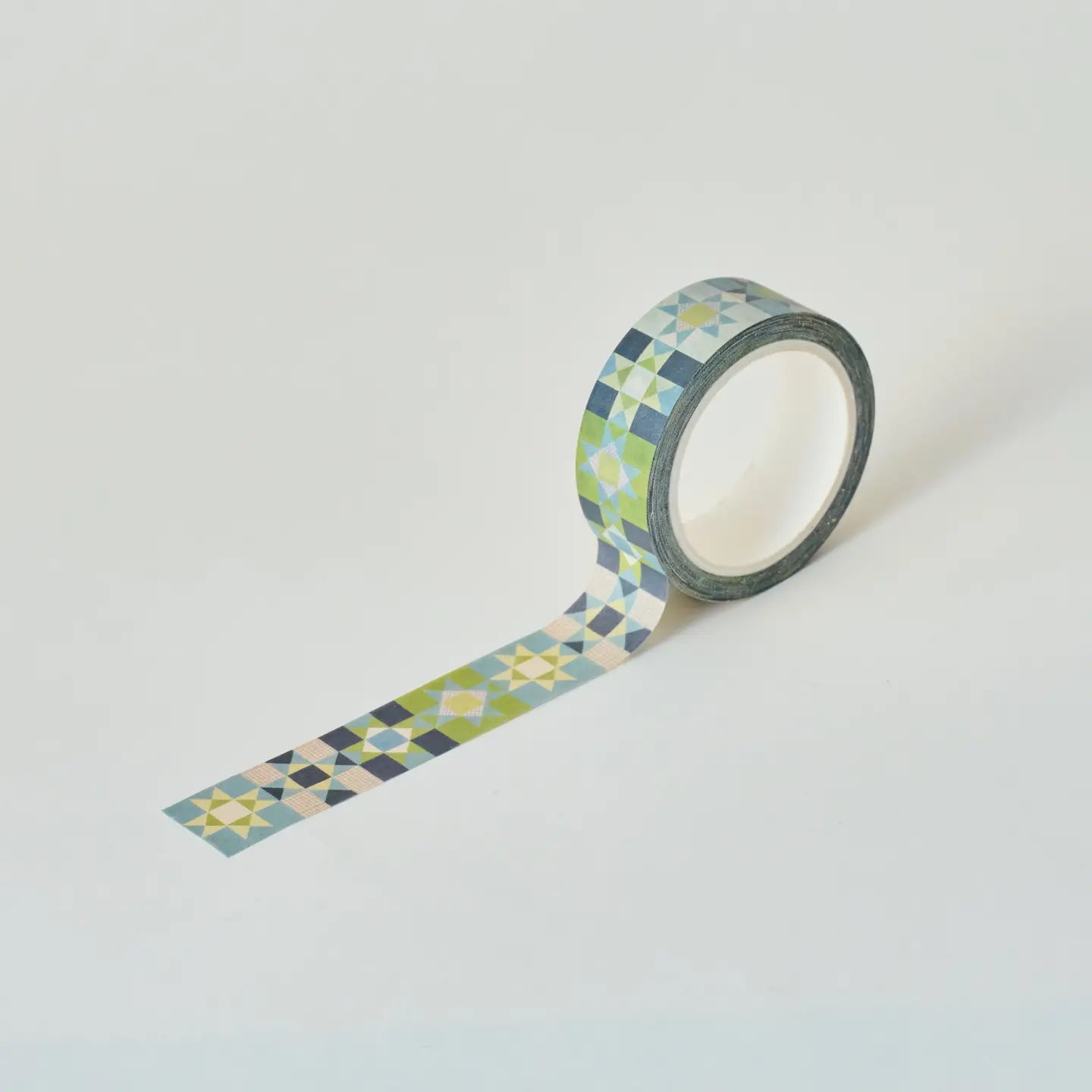 Deze unieke Washi Tape heeft een Ohio-ster patchwork quiltontwerp. Leuk om te gebruiken in je schetsboek, notitieboek, journal, planner of om cadeautjes mee in te pakken!