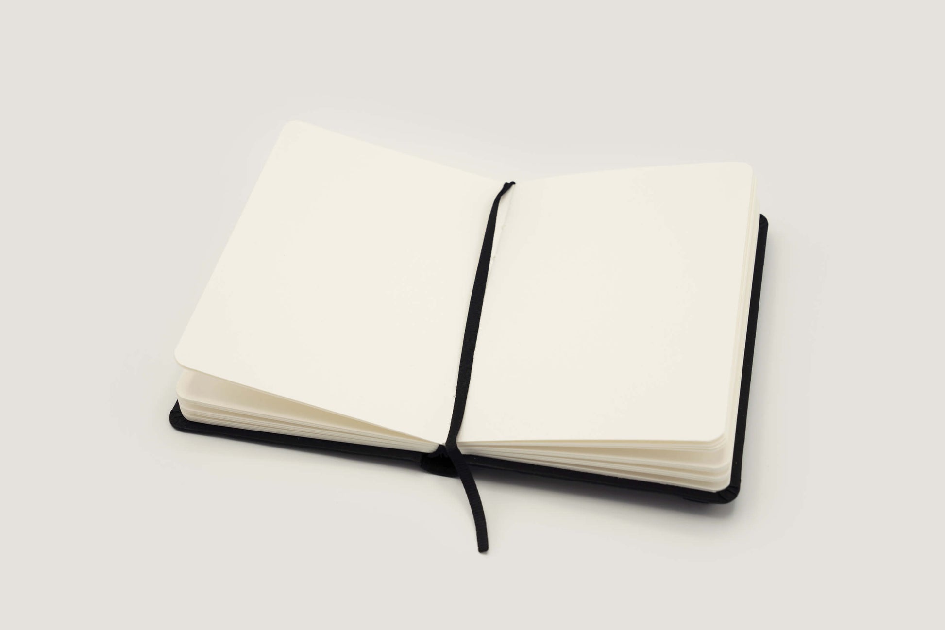 Maskeerstiften en maskeertape kunnen zonder resten worden verwijderd. Zelfs het gebruik van een gum is mogelijk dankzij de oppervlakteafmetingen. De zwarte, stevige kaft met zwarte boekenlegger geeft het schetsboek de elegantie en stabiliteit die het nodig heeft. Een elastiekje sluit het schetsboek goed af.