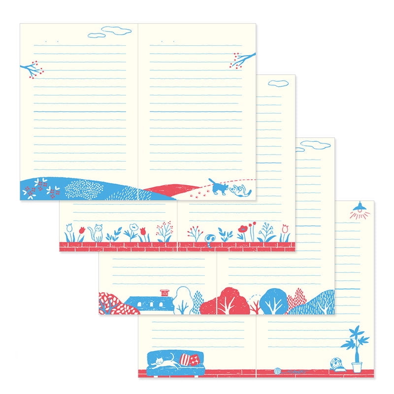 Elke pagina bevat vier dagen en dus ontwerpen (een halve pagina per dag zoals getoond op afbeelding 3). Herhaling van het ontwerp na elke 8 pagina's. Aan het einde van het dagboek vind je ruimte om je naam en contactgegevens in te vullen en de begin- en einddatum. De pagina's bevatten vrolijke illustraties gedrukt op het populaire Midori MD Paper. Dit papier zorgt er voor dat je ongestoord kunt schrijven zonder inkt bloedingen. Ideaal voor als je weer eens een vulpen uit de kast wilt trekken! Een bijzonder boekje om in je collectie te hebben.