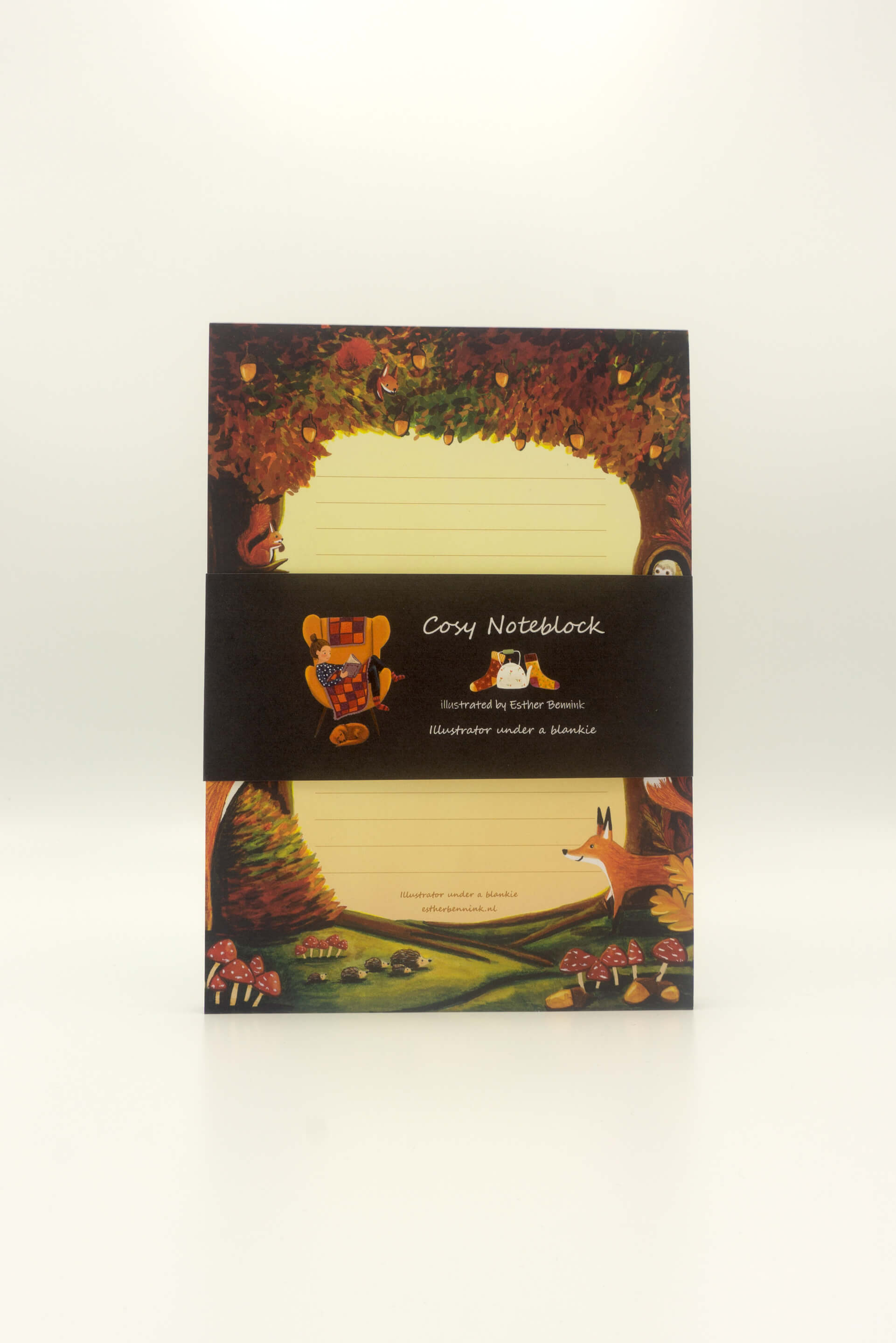 Dompel jezelf helemaal in de herfstsferen met dit schattige notitieblok ontworpen door illustrator Esther Bennink. Een dubbelzijdig bedrukt A5 notitieblok met 50 vellen vol warmte en coziness met eekhoorntjes, egels en vossen. Op dit notitieblok wíl je schrijven. Ook leuk om aan je prikbord te hangen of als boekenlegger te gebruiken!