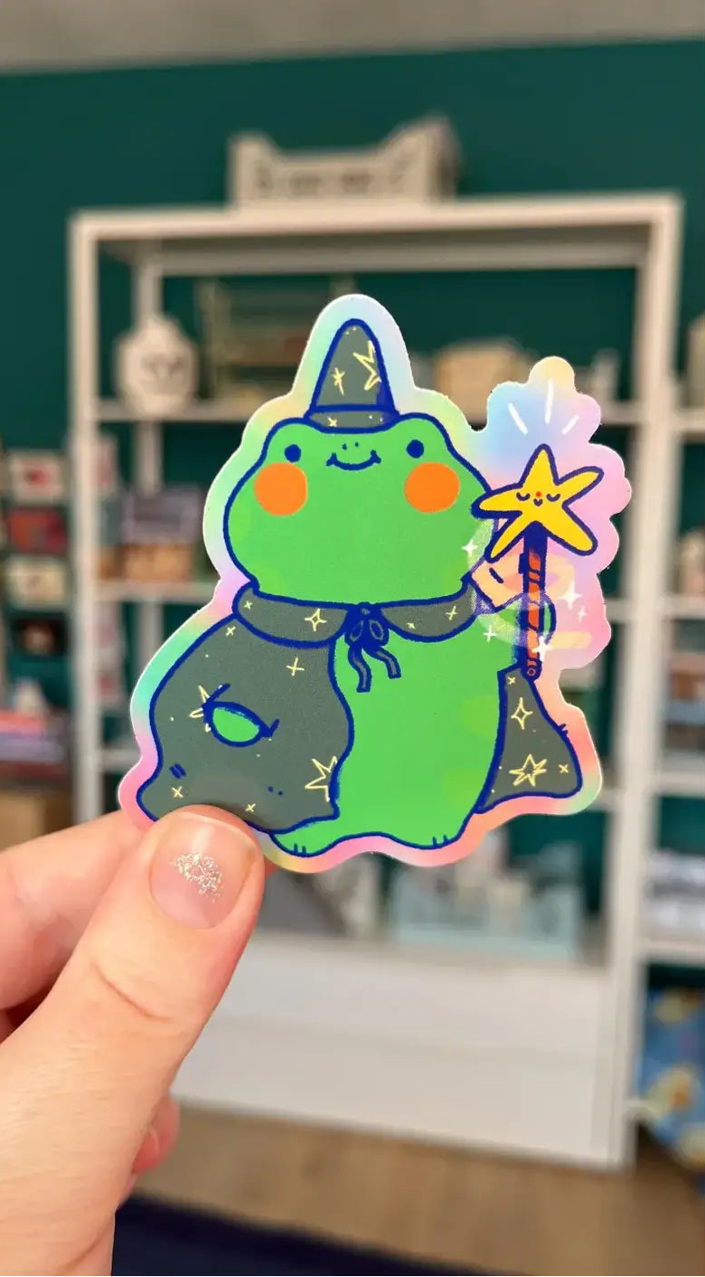 Sticker Bloemkolie Vinyl - Kikker tovenaar