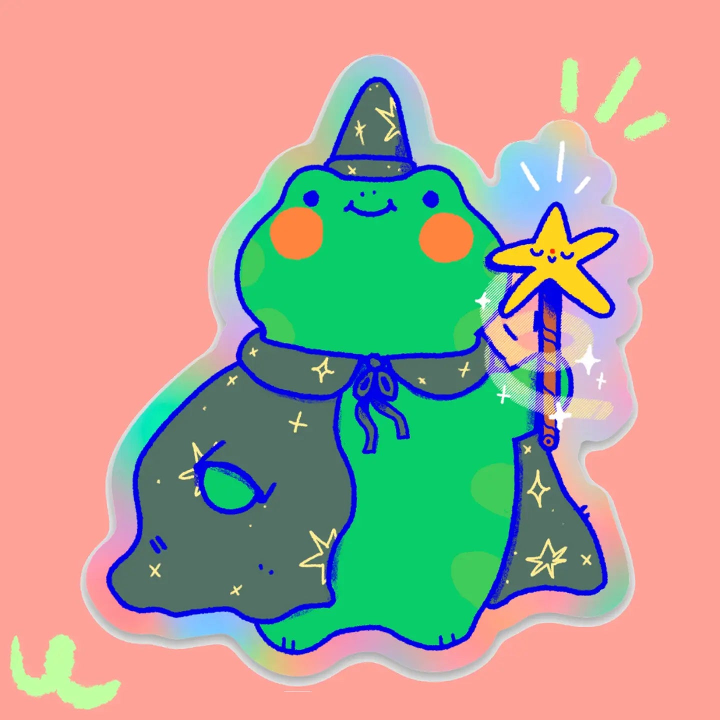 Deze magische kikker tovenaar, die overal en altijd sprankels en glimlachen verspreidt! Met de pastel kleurige achtergrond zal hij geweldig staan op je laptop, telefoon of stationery! Je kunt ze op elk oppervlak plakken. Deze stickers kunnen worden gebruikt om notitieboeken, waterflessen, planners, plakboeken, feestartikelen, schrijfwaren, je telefoon of zelfs je skateboard te versieren! De mogelijkheden zijn eindeloos.