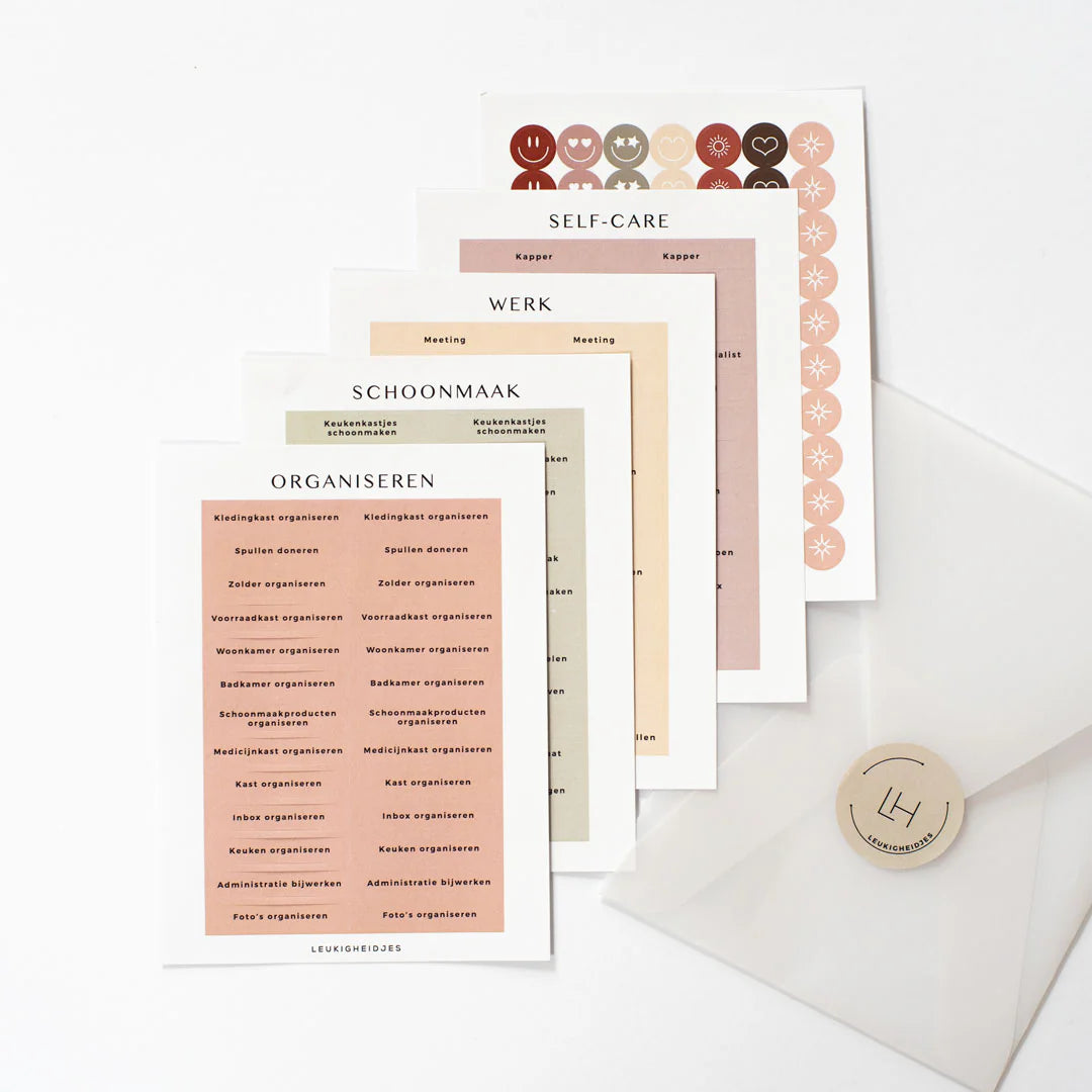 Stickerset 'Organiseren' 5 vellen - Leukigheidjes