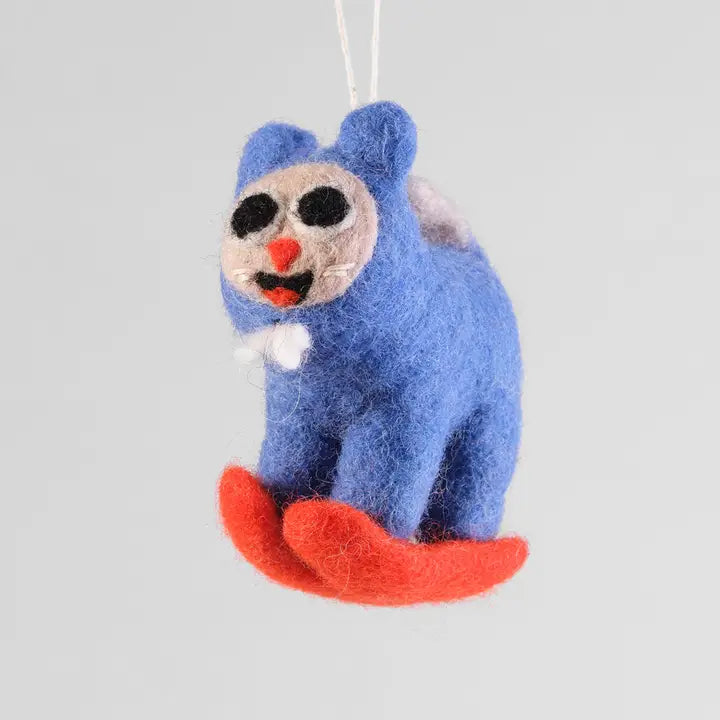 Een hippe kat op ski's, natuurlijk onmisbaar tussen jouw kerstversiering. Deze charismatische katjes zijn ontworpen door Elliot Kruszynski, die al lang met Wrap samenwerkt. Ze dragen wollen truien, gluren uit hun kerstkousen of 'hangen' er gewoon fantastisch uit te zien.