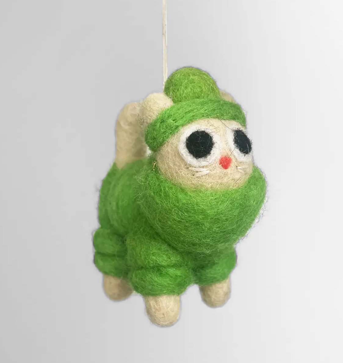 Deze super schattige en knuffelige vilten katten kersthanger wil je niet missen in je boom. Deze charismatische katjes zijn ontworpen door Elliot Kruszynski, die al lang met Wrap samenwerkt. Ze dragen wollen truien, gluren uit hun kerstkousen of 'hangen' er gewoon fantastisch uit te zien.