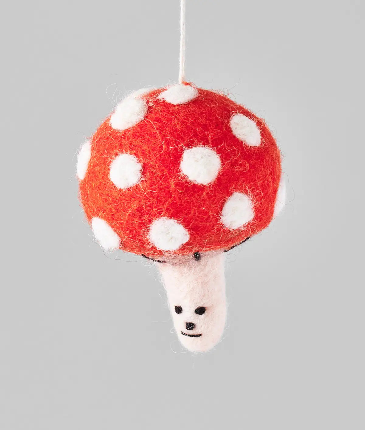 Deze charmante paddestoel wilt graag een plekje aan jouw boom of in je huis deze kerst. De vilten paddestoel is ontworpen door Holly St Clair, die al lang met Wrap samenwerkt. Ze dragen wollen truien, gluren uit hun kerstkousen of 'hangen' er gewoon fantastisch uit te zien.