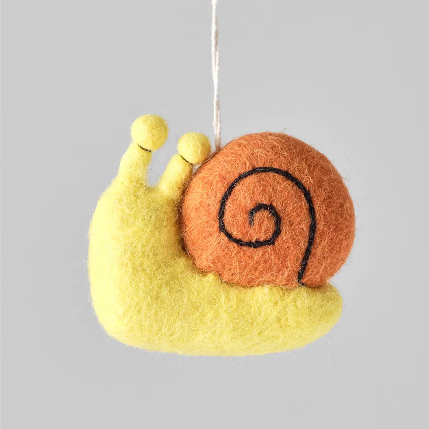 Deze slak is klaar om in jouw boom, aan je autospiegel of raamkozijn te hangen. Deze vilten vrienden zijn ethisch geproduceerd in samenwerking met een Nepalees ontwikkelingsproject met 100% fairtrade materialen en worden met de hand gemaakt door deskundige lokale vakvrouwen.