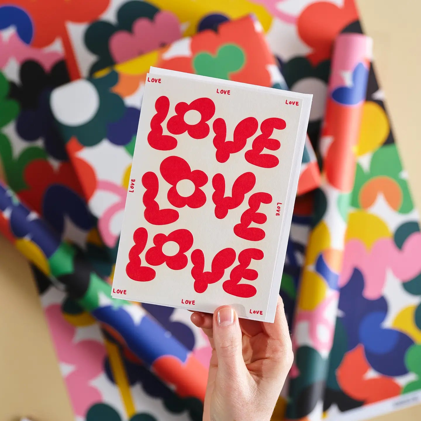 Wrap - Wenskaart 'Love love love' in reliëf